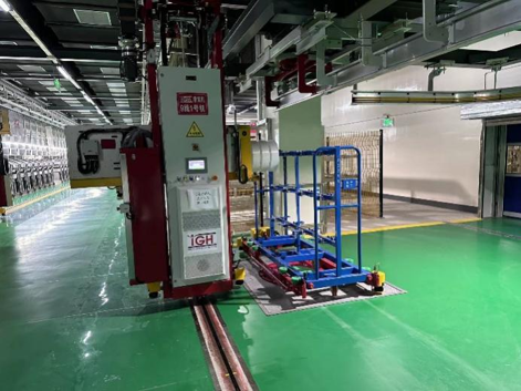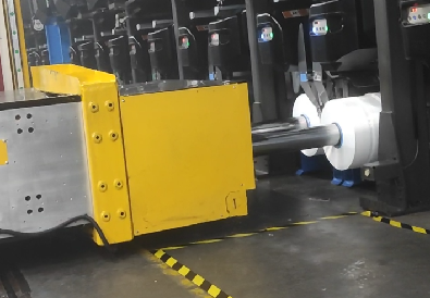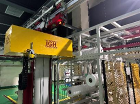 3.落筒機(jī)根據(jù)指令按批號(hào)放置絲餅至手推絲車或者天軌小車上。